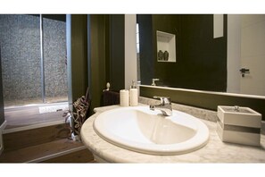 Kylpyhuoneista löytyy suihku, bidee ja hiustenkuivaaja. Lisäksi huoneissa on kahvin-/teenkeitin ja silitysrauta/-lauta.