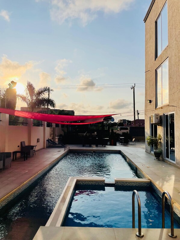 Hotelli, jonka tarjontaan kuuluu baaria/loungea ja ulkouima-allas