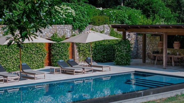 Huvila, jossa on yksityinen uima-allas ja keittiö