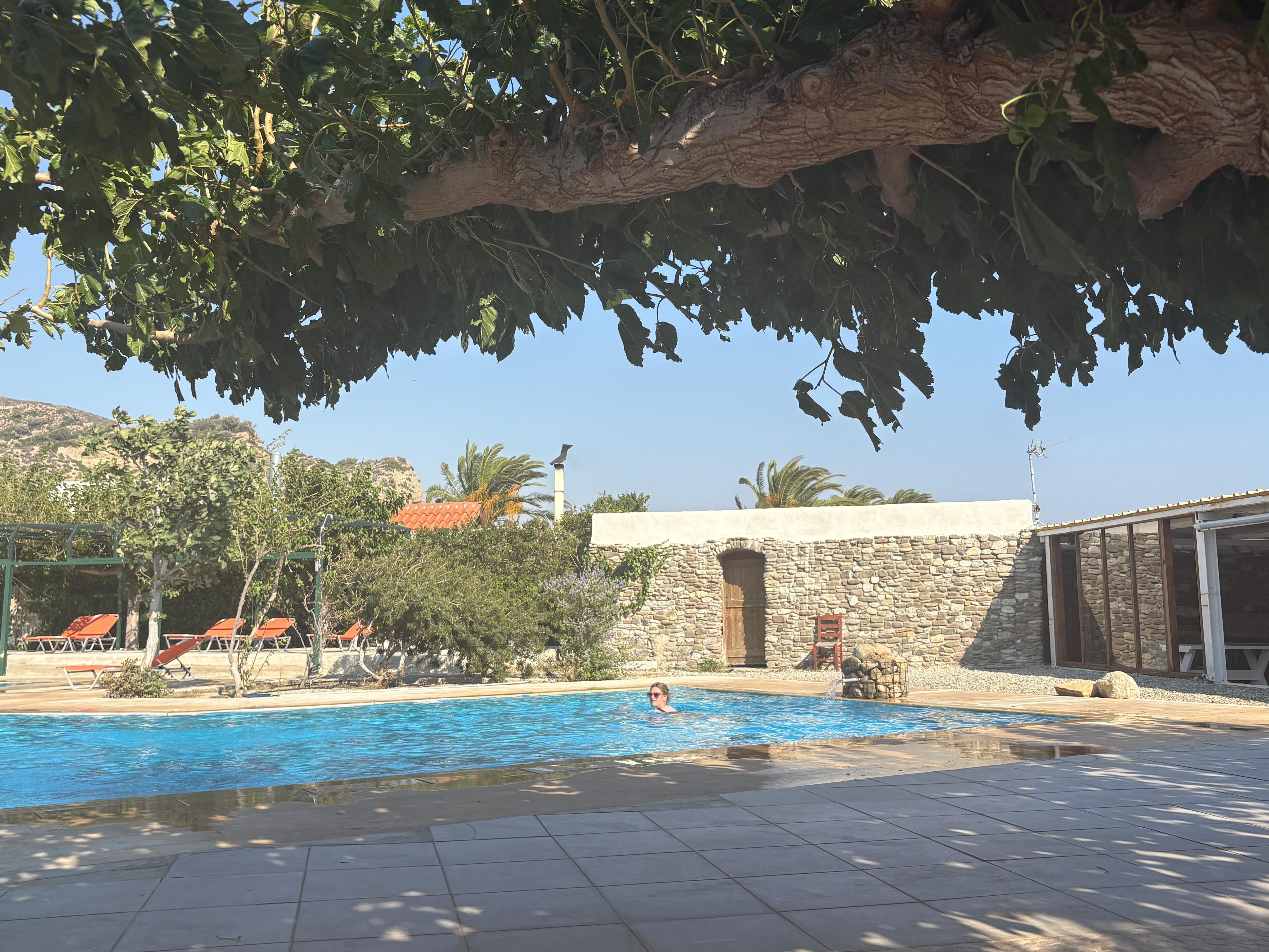 Kyllä, tässä majoituspaikassa on kauden mukainen ulkouima-allas. Uima-allas on käytettävissä klo 8.00–19.00.