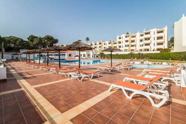The apartment itself was great - very spacious living area & balcony and well equipped kitchen. Beds were very large and comfortable and the second bedroom actually had 4 single beds unexpectedly. Bathrooms are a little more worn than the pictures show but everything was clean and the two showers were great. Air con in the living room/kitchen was ideal and the host was lovely - we received check-in instructions the day before arrival. One thing to note is how steep the area is. The apartment is at the back of the complex but still very well located for the old town and beach (10-15 minute walk to both) although they are both at the bottom of a few steep hills. We used Bolt to get taxis and didn’t pay more than €5 to get anywhere which was ideal. The pool was great and not too busy - we went in mid-June and didn’t struggle to find 4 sunbeds at any time of day.