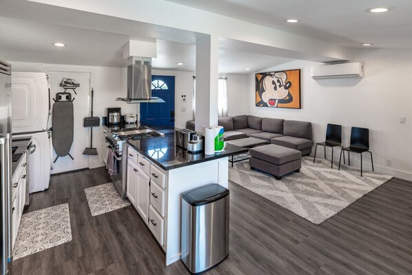 This VRBO is exactly as advertised. The common area is small for how many people are allowed to stay there. There was a nice outside area but the weather did not cooperate with us so no fault of their own. It had a nice welcoming box of snacks and some juicy type drinks for kids in the fridge. This house had Viking appliances! Parking was plentiful. Both bathrooms were also very nice.