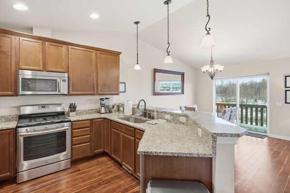 Loma-asunto, jossa on keittiö ja parveke