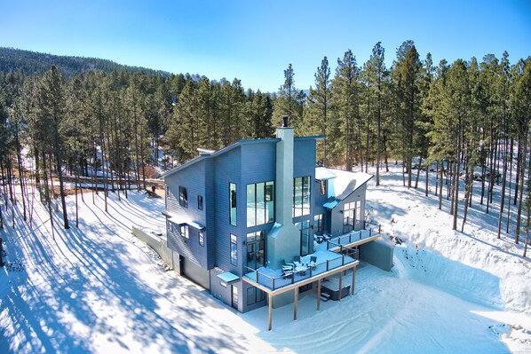 Have the ultimate Rocky Mountain experience when you stay at this one-of-a-kind, custom luxury chalet. Outfitted with all the latest modern conveniences and much more, the exquisite blend of contemporary and mountain styles come together to create a perfect atmosphere for your Angel Fire Mountain vacation. This newly built luxury 4-BEDROOM / 4.5-BATHROOM chalet SLEEPS UP TO 15 PEOPLE, with enough room to spread out comfortably in this impressive 4081 square feet of luxuriously appointed living space. This spectacular custom-built mountain home has one of the best locations available, conveniently located only 0.8 miles from the Angel Fire ski basin, making this premium home close to all the action – skiing/snowboarding, snowshoeing, golfing, fishing, hiking, mountain biking, etc. Close to town, yet nestled in a secluded forest, that makes for breath-taking views in all directions. The scenery is sure to amaze, as you look out down the valley from the soaring windows and private deck. The patio and deck provide exceptional viewing for wildlife during all seasons. The outdoor areas include furniture, a professional-grade Viking gas grill, and a hot tub. Whether you are grilling burgers and dogs like BBQ royalty or soaking in the hot tub enjoying the crystal-clear night sky, this amazing home will create lasting memories for years to come.