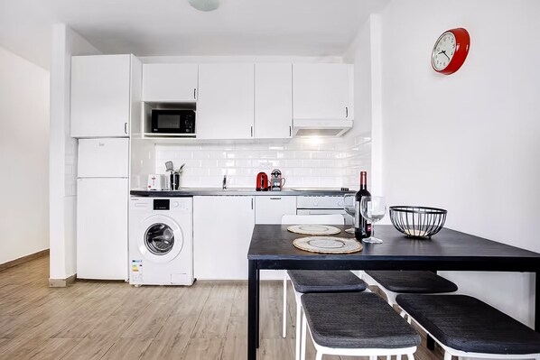 Huoneisto, jossa on keittiö ja patio