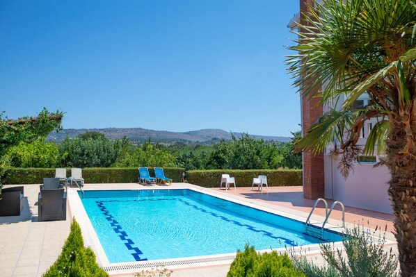 Villa Katerina: Ihanteellisella paikalla sijaitseva Villa, jossa on lämmitetty uima-allas.