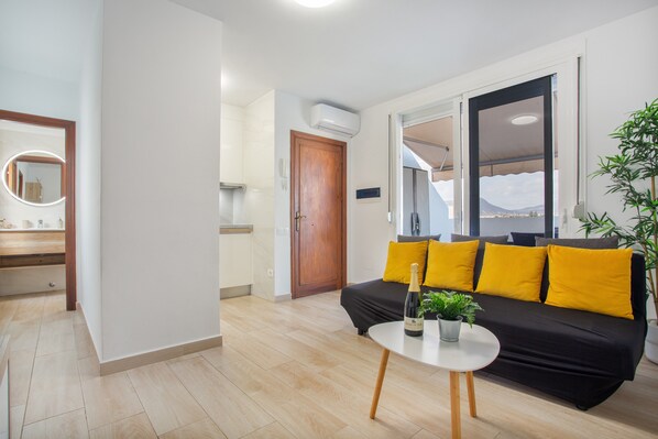 Located in Las Galletas, Arona, this modern and bright 45 sqm apartment accommodates up to 4 guests with 1 bedroom featuring a comfortable double bed and a sofa bed. You will find a private fully-equipped kitchen, along with Wi-Fi, air conditioning, a fan, TV, washing machine, and a baby bed for your convenience. The apartment offers stunning mountain views of Mount Teide and features self check-in.