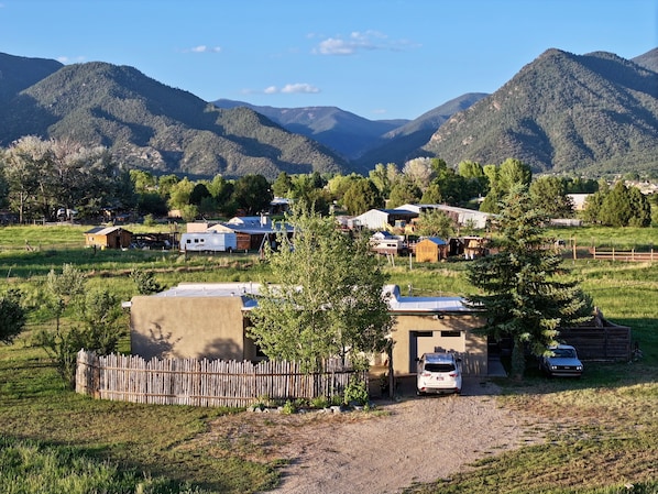 Escape to the quiet beauty of Taos at this peaceful 2BR/2BA home set on 4 private acres at the base of the mountains. Just 12–15 minutes from Taos Ski Valley and Taos Plaza, this retreat offers the perfect balance of seclusion, comfort, and easy access to everything the area has to offer.
