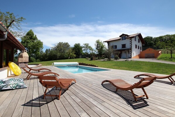 Loma-asunto, jossa on yksityinen uima-allas ja takka