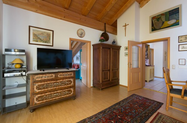 Upea, erittäin valoisa 70 m²: n huoneisto I-Zellerhorn - hyväkuntoiset, täydelliset laitteet, altistuvat palkit, lattialämmitys ja lämpöpatterit. Keittiössä astianpesukone, liesi, uuni ja kaikki laitteet. Olohuone mukava vuodesohva, iso pöytä 6 henkilöä, satelliitti-tv, radio CD-soittimella, DVD-soitin, puhelin, internet-yhteys D-LAN ja WLAN. Ylimääräinen makuuhuone 3 vuodetta: parivuode ja sänky. Kylpyhuone ja wc.