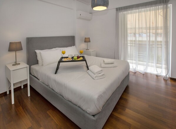 Paikka koostuu yhdestä makuuhuoneesta, jossa iso parivuode, yhdestä erillisestä täysin varustetusta keittiöstä, yhdestä kylpyhuoneesta ja yhdestä olohuoneesta, jossa 1 kaksinkertainen futon-vuodesohva ja kaksi erillistä vuodesohvaa. Rakennuksen edessä on hiljaiseen kadulle päin oleva parveke. Vieraamme pääsevät myös jaetulle terassille, jolta on upeat näkymät Aropolikselle.