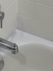 The restroom sink handle bumped into the mirror. The mirror had to give a little to turn the water on. The LED lighting around the bathroom mirror was flickering and not working properly. The shower had medium pressure.