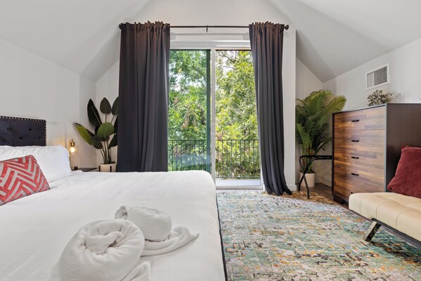 The third floor has two King Bedrooms that share a well-designed bathroom. The northern king bedroom has a small balcony where guests can enjoy an exquisite view of the downtown Austin City Skyline.