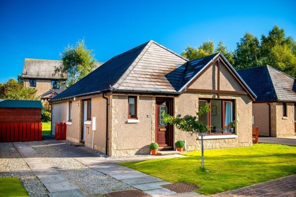 Birchwood Cottage has a open lawn at the front of the house with an enclosed gated garden at the back of the property with a lawn and mature flower beds with shrubs and plants. There is a patio area with a BBQ, table and seating for you to be able to unwind in after a busy day of exploring the many activities that the Cairngorms National Park has to offer.