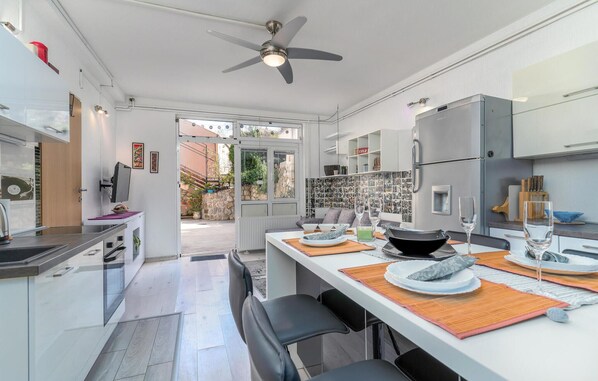 Step into a daylit inviting vacation home with cozy furnishings and heartfelt details. The design and structure with natural stone wall of the house offer the whole living space a cozy natural flair. Here you can feel especially comfortable with your family or friends, and enjoy the vacations in Croatia, where the soul dangle in the first place. Outside you have your own terrace, as well as a large garden with gazebo and communal barbecue, which you share with CKA326. Here you can lie in the sun in the greenery, invest your time in a novel, or end your evenings at the barbecue.