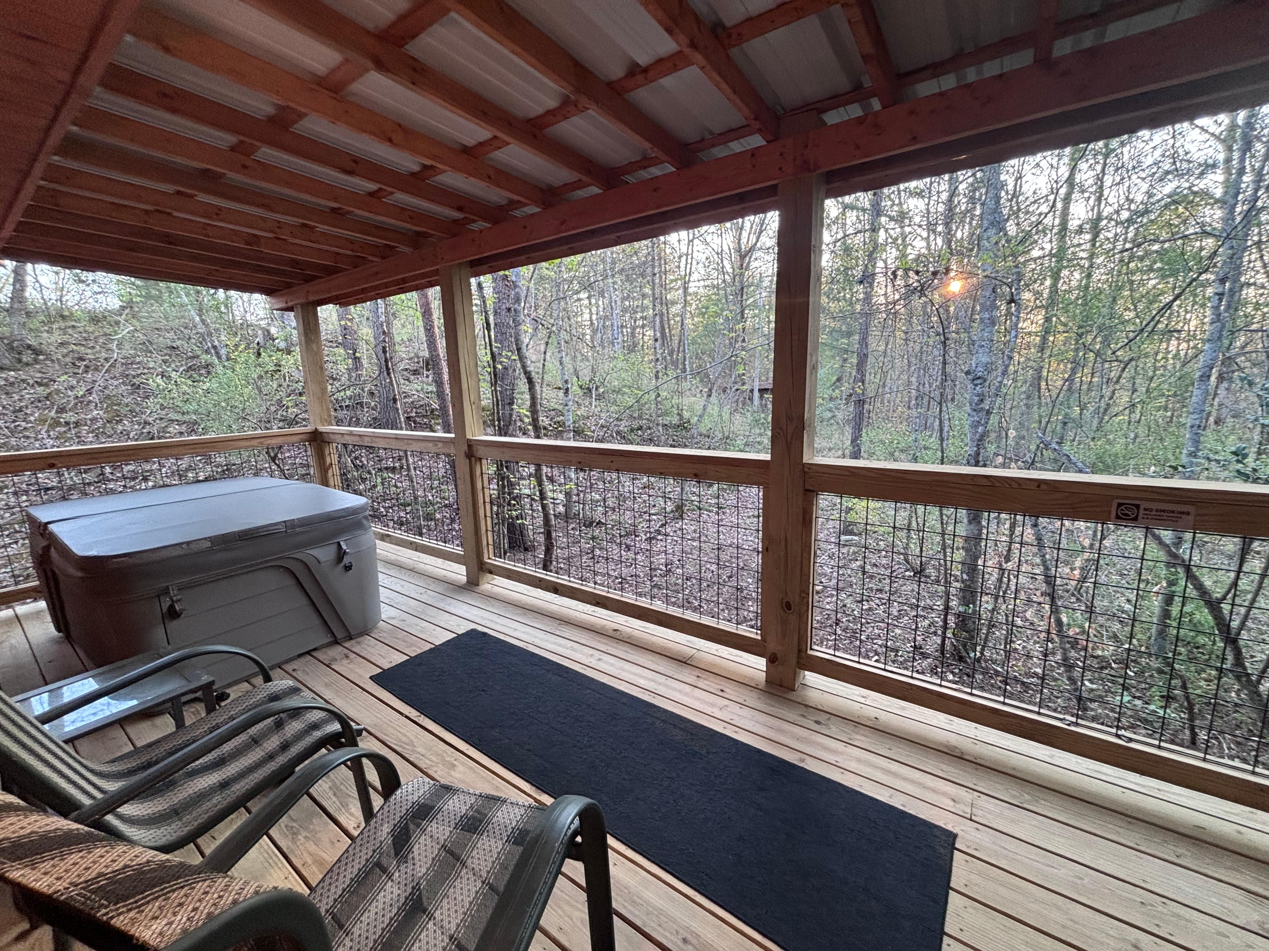 With easy access to off-road trails, it`s an ATV and dirt bike-friendly locale where you can either bring your own or rent nearby to traverse the rugged landscapes. The road sees sparse traffic, mostly the occasional band of ATVs heading out for exploration. The cabin`s back deck offers unparalleled seclusion – a private haven where the tranquility of the forest envelops you, creating the illusion of being the only ones in the wilderness. It`s a perfect blend of solitude for relaxation and proximity to the area`s bustling adventure spots.