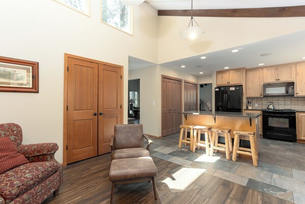 Distributed Audio Stereo System, jossa on kaiuttimet keittiössä, Bonus-huoneessa, Hot Tub & Deck -alueella, tarjoaa saumattoman äänentoiston. Kolme asuintilaa mahdollistaa suuren ryhmän leviämisen. 4 makuuhuonetta ja 4 kylpyhuonetta mahtuu kaikille mukavasti. Ota pyöräretkelle missä tahansa Sunriverissä yhdellä 11 aikuisen pyörästä, jotka tarjotaan tämän loma-asunnon yhteydessä.