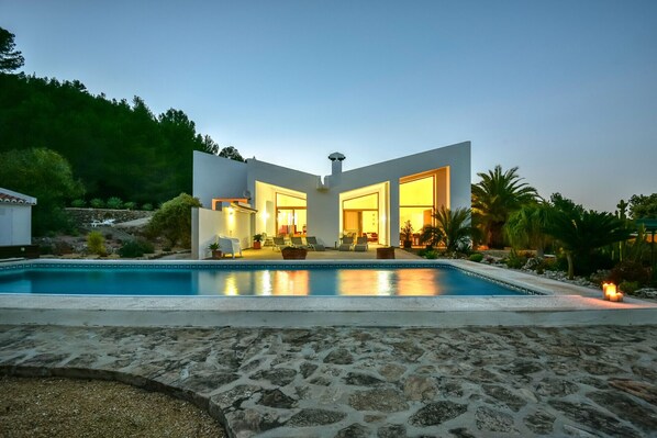 Huvila, jossa on yksityinen uima-allas ja keittiö