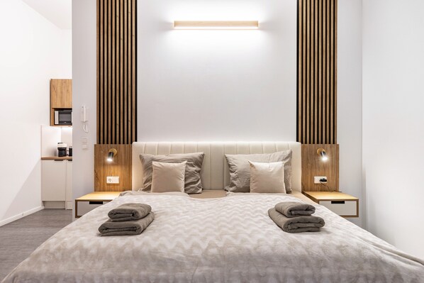 Urban Stay by Ku’damm | Central Berlin Apartment 4 – Paris in Berlin offers 60 m² of space for up to 4 guests. You’ll find a living room with sleeping options, a bedroom, and access to shared bathrooms. The apartment features a well-equipped kitchen, a dedicated workspace, high-speed Wi-Fi for video calls, a TV, and video-on-demand services to ensure you feel comfortable and entertained throughout your stay.