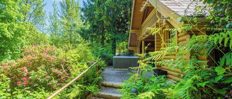 Timber lodge set by the lake with one double and one twin.