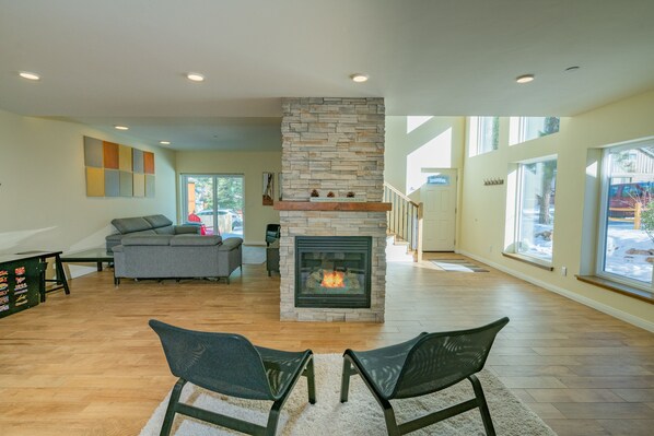 AMENITIES - AC unit downstairs, Smart TVs with cable, streaming apps along with fast WiFi. Arcade game machine, board games and card games. Relax in the jetted tub or near the cozy gas fireplace. Laundry room with side-by-side washer/dryer.