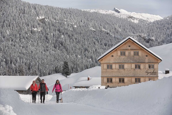 Hei Jumala talossa Metzler!Haluatko levätä ja levätä lomallasi?Tarjoamme tilavan, puhdas asunto terve, rakennettu puusta talon. Viihtyisissä huoneistoissa on pariskunnat ja lemmikkieläimet tervetulleita. Talomme hiljainen sijainti - näköalalla Hirschbergiin ja Kanisfluhiin - on lähellä keskustaa eikä liikennettä. Autollesi on autokatos käytettävissä. Puutarhassamme on kesällä oleva tunnelma, jossa on istuinalue sinulle. Talvella voit nauttia aurinkoisista hiihto- ja luistelupolkuista Bizaussa ja täydellisesti valmistetuista talvivaellusreiteistä. Bizaussa on noin 8,5 km hiihto- ja luistelureittejä kauniilla ja aurinkoisella maaseudulla. Lähin suuri hiihtokeskus on Damüls-Mellau. Mellaubahnilla (noin 8 km) pääset suoraan hiihtoalueelle. Olisi iloisia voidessamme toivottaa sinut tervetulleeksi vieraillemme.