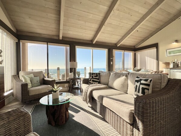Tyynenmeren länteen päin oleva mökki antaa sinun katsella surffata aina ja nauttia kaikkein hengättävimmistä auringonlaskuista, kaatumisesta surffailusta, merisumusta ja rohkeista karuista kivimuodostelmista. Suuri huone, jossa on 20 jalkaa leveä seinä, jossa on Tyynenmeren edessä olevat ikkunat, on mukavasti sisustettu kauniilla lasikivet, liekkivaikutteisella takalla ja seinälle asennetulla T. V. & Internet -taululla.