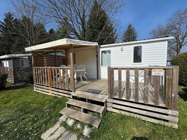 Set within a 3-star campsite, you have access to two swimming pools (indoor and outdoor) whatever the weather. On-site restaurant, bar, fishing, hiking and cycling trails: every day brings something new. Children can enjoy themed activities while parents unwind.