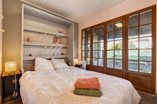Self check-in allows you to arrive whenever suits you, with no time restrictions. Outside, a private terrace invites you to relax in the fresh air, surrounded by Médoc’s nature. Private parking for one vehicle is available on site. A shared bike storage area is also at your disposal to explore the surroundings. Pets are welcome, with one allowed per stay. Parties are not permitted on the property.