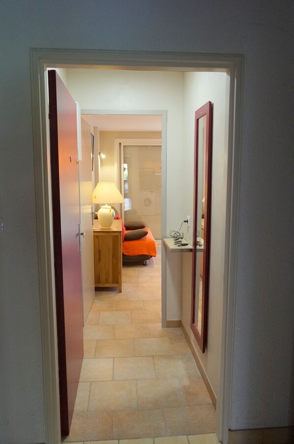 Se koostuu olohuoneesta, jossa on 140 cm vuodesohva (erittäin mukava) olohuoneessa, makuuhuone, jossa 2 80 cm vuodetta, jotka voidaan yhdistää 1 160 cm vuodeksi, kylpyhuone suihkulla ja wc, suljettu 7 m²: n lodža, joka avautuu osakehuoneiston puutarhaan.