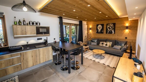 The L'Ecrin residence is located in the heart of the Villards district. This attractive residence has an elevator. You'll be ideally located 100 meters from the ski slopes and ski lifts. You'll be close to the shops and amenities of the Les Arcs 1800 resort. Enjoy a free-access relaxation area with a sauna, hammam, and a fitness area. Surface area : about 75 m². Ground floor. Orientation : West. Living room with settee. Bedroom with , double bed, . Bedroom with double bed. Bedroom with 4 bunk beds. Open-plan kitchen with oven, oven / microwave, dishwasher, 4 vitroceramics cooking rings, fridge-freezer. Bathroom with WC. Separated WC. Terrace. washing machine, dryer. The beds in elevation are not suitable for children under 6 years.
