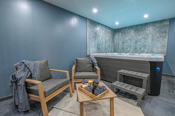 Loma-asunto, jonka tarjontaan kuuluu poreallas ja sauna