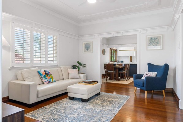 Step into a warm and inviting 3-bedroom house, perfect for families or groups seeking comfort and style. Each bedroom offers its own charm, including king, double, and single beds, with blackout blinds for a restful sleep. The living room features a cosy couch, wood flooring, and a TV for relaxing nights in. An airy kitchen boasts modern amenities like an induction stovetop, electric oven, and all the essentials for cooking. Outside, enjoy the sunroom or the peaceful front room, while the garage provides secure parking. With tasteful décor and thoughtful details throughout, this home is a haven for those exploring the vibrant West End.