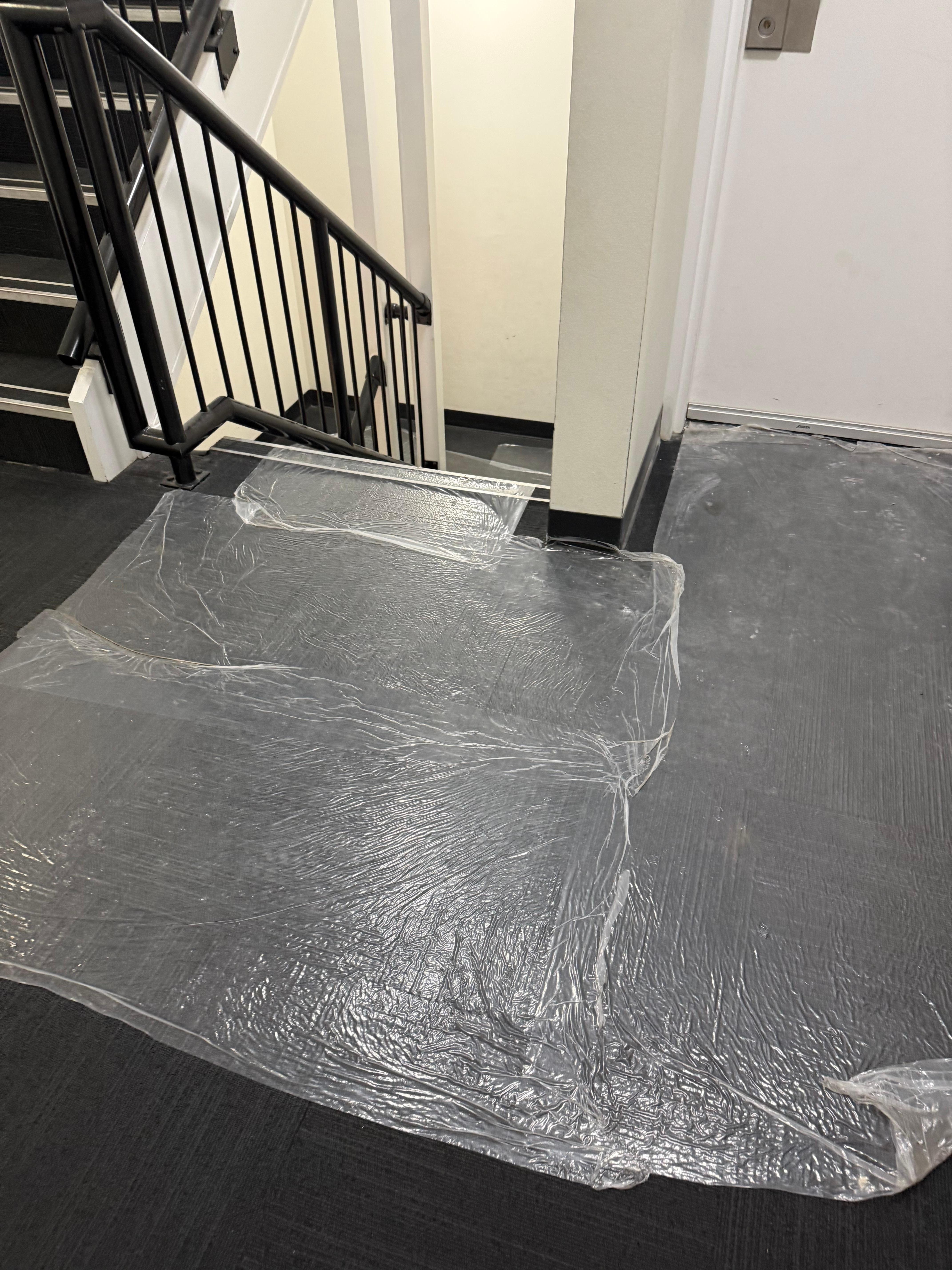 The room was partially painted, very sparse outdated furniture, uninviting decor and terrible wall art. The floor was uninviting cold fake wood instead of carpet, which is a bad idea when you have rooms below you. Windows were very dirty.
