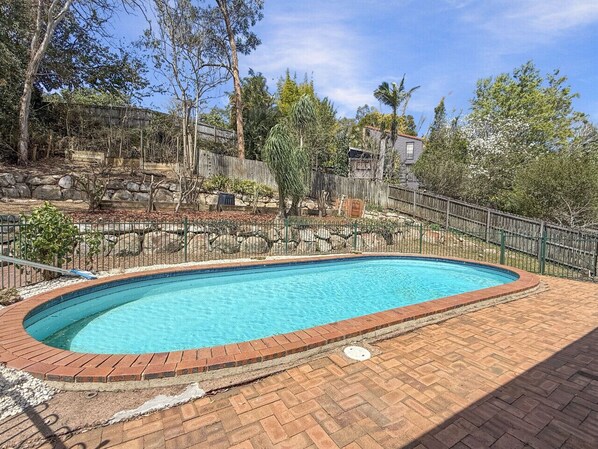 Pool - Lagoon shaped pool in secure fence in the back yard, dining table and enclosed yard (Please note: fence line not 100% secure on one side).