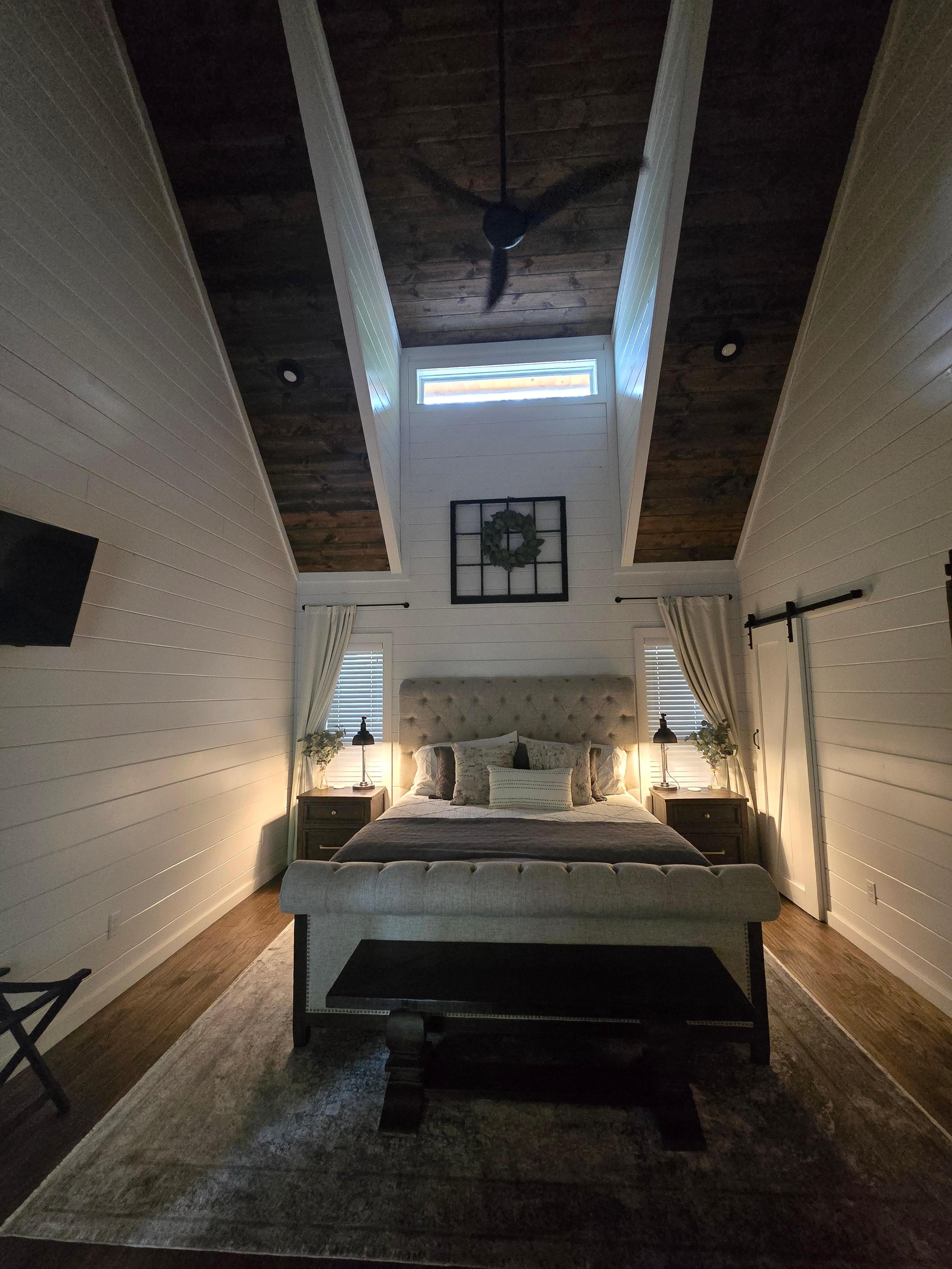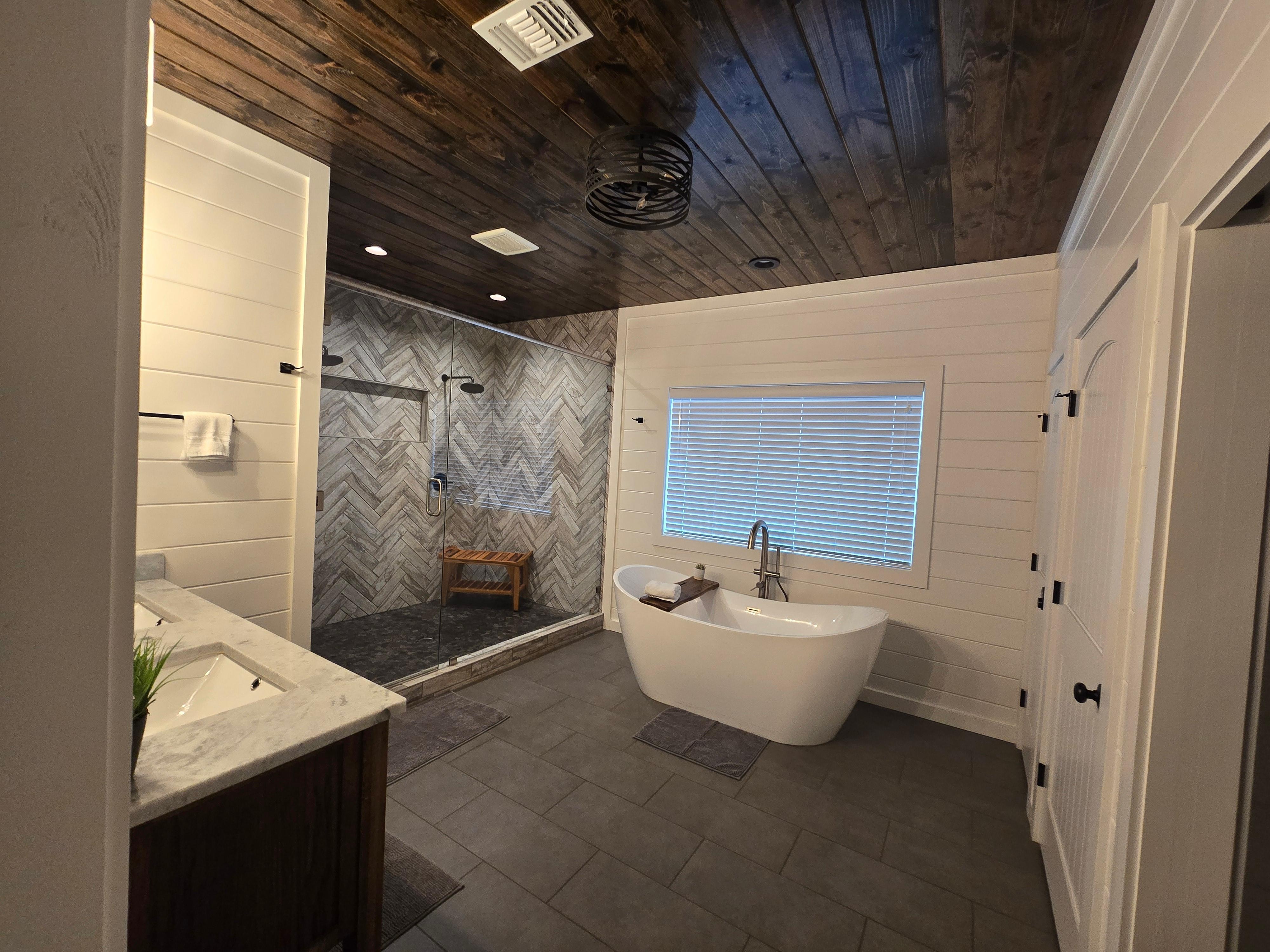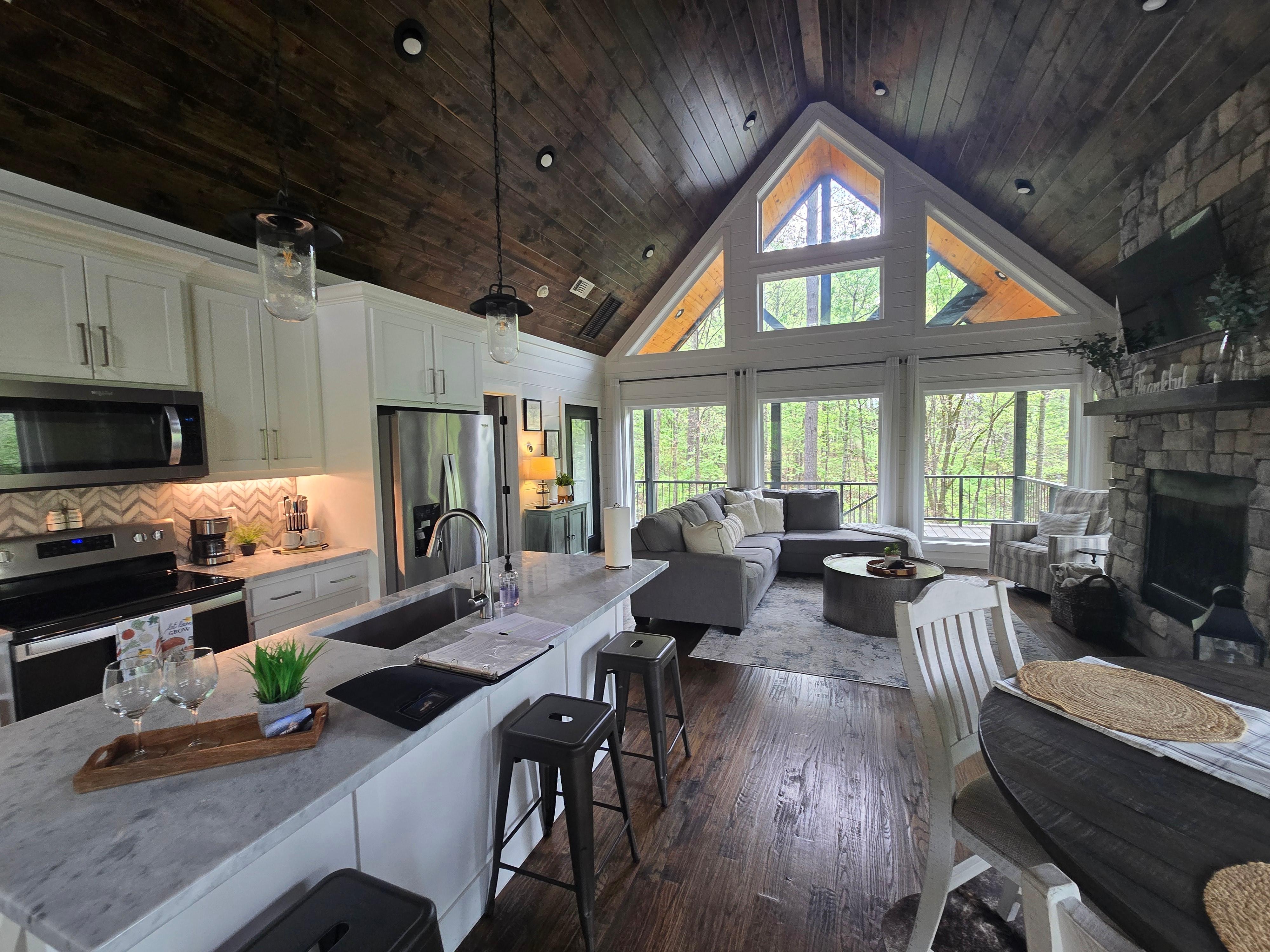 Set amidst the Ouachita National Forest and beautiful Broken Bow Lake is your next couples celebration destination. Bottoms Up Cabin is a new ultra-luxury cabin retreat for couples looking for that perfect getaway. Cabin amenities include both indoor and outdoor fireplaces, firepit, Viking hot tub, couples shower with multiple shower heads, luxury bathtub, fully equipped kitchen, 3 TVs, Wi-Fi, washer and dryer, and a large back deck set high in the trees with paved roads all the way to the cabin. You will undoubtedly find many comfortable places to connect with each other, nature, or quiet time with a good book.