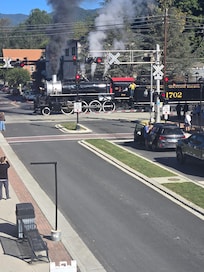 Stay in beautiful Bryson City across the street from the Great Smoky Mountain Railroad! You can walk to shops, breweries, restaurants, and to board the train or you can sit on your private front deck and watch the train! Deep Creek (our closest entrance to the Great Smoky Mountain National Park) is a short 5 minute drive. At Deep Creek you can hike, picnic, and tube! We are conveniently located 15 minutes (driving) from the rafting and zip lining on the Nantahala River and 15 minutes from Cherokee. Our suite is situated above Dolce (our coffee roaster & cafe) where you can enjoy a complimentary muffin and coffee each morning and 20% off any other purchases.