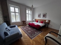 Gozsdun sisäpiha, Dohány-kadun synagoga ja Pyhän Tapanin kirkko sijaitsevat 10 minuutin kävelymatkan päässä tästä perheystävällisestä asuinrakennuksesta. Unkarin valtion oopperatalo ja Budapestin joulumarkkinat ovat myös 10 minuutin kävelymatkan päässä. Deák Ferenc tér M -raitiovaunupysäkki ja Deák Ferenc térin metroasema sijaitsevat 5 minuutin kävelymatkan päässä.