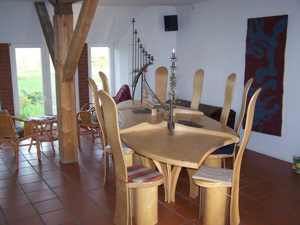Suunnitelma on tyypillinen pohjoisen Saksan maatilan - asuintilaa ja navetta saman katon alla.