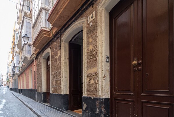 The apartment is located in a traditional Cádiz building from the 18th century on the second floor WITHOUT ELEVATOR. It has a spacious, bright living room with views of the street, two bedrooms with two single beds and one bedroom with a double bed. The bedrooms are very quiet and receive light from an interior corridor. A spacious kitchen with a dining area, a bathroom with a bathtub and a bathroom with a shower.