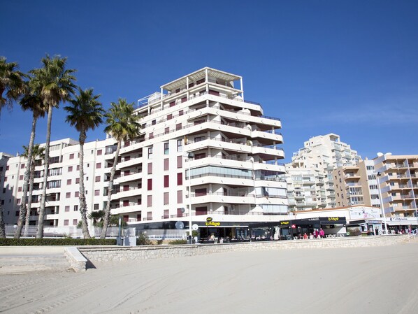 Calpe 2 km calpeistä: Uudenaikainen, kodikas kerrostalo "Topacio IV", rakennusvuosi 2009. Vilkas, aurinkoinen sijainti, 20 m meren rannalta, 20 m rannalta, suora yhteys rannalle. Yhteiskäytössä: tontti (aidattu), uima-allas aidattu (7 x 6 m, käytössä kausiluontoisesti: 01.Tam. ja 31.Jou.). Ulkosuihku. Talossa: hissi. Kauppa, ruokakauppa, supermarket 50 m, ravintola, baari, kahvila, internetkahvila, jalankulkualue, terassi 20 m, bussipysäkki 30 m, hiekkaranta "PLAYA DE LA FOSSA" 20 m. Venesatama 1.5 km, venesatama 1.5 km, surffauskoulu 1.5 km, purjehduskoulu 1.5 km, tennis 50 m, minigolf 150 m. Lähettyvillä nähtävyyksiä: Aqualandia 25 km, Mundomar 25 km, Terramitica. Huomioitavaa: soveltuu perheille, soveltuu senioreille.