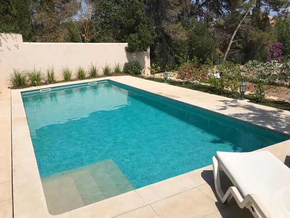 Viviani und Ihr Mann sind besonders gastfreundlich und hilfsbereit, wir haben uns von der ersten Sekunde an willkommen und wohl gefühlt. Haus und Garten sind wunderbar angelegt, im Haus selber fehlt es an nichts, so dass man getrost mit leichtem Gepäck reisen kann: Strandlaken, Strandschirme, Kühltasche, Proviantdosen, Waschmaschine, Bügeleisen (wer drauf auch im Urlaub nicht verzichten mag ;-)), eine vollständig ausgestattete Küche. Die Einrichtung ist sehr geschmackvoll gewählt, ein gelungener Mix aus traditionellem mallorquinischem Charme und modernen Einflüssen. Auf der Terrasse mit Blick auf die imposante Palme und blühende Sträucher, hat man die Wahl zwischen Hängematten, Liegestühlen oder Tisch und Stühlen. Der Poolbereich mit dem Salzwasserbecken ist ein Traum. Es Capdellà, unweit von Calvíá entfernt, ist ein eher ruhiges Bergdorf am Fuße der Serra Tramuntana. Hotelanlagen sucht man hier vergeblich, stattdessen ist das Dorfbild durch inseltypische Häuser geprägt, ein kleiner Inhabergeführter Laden versorgt einen mit den notwendigsten Lebensmittel ( vor allem am Ankunftstag sehr praktisch) und frischen Backwaren. Ebenso gibt es eine Apotheke, und 2-3 mallorquinischen Bars, in denen man sehr gut essen kann. Alles fussläufig zu erreichen. Die ruhigen piniengesäumten Badebuchten von Cala des Mago und Calla d‘en Monjo sind ca. 20-30 Autominuten entfernt, wer es etwas trubeliger mag, ist in 10 Minuten in Palmanova. Nach Valdemossa +Sóller ist man in unter 1 Std. Autofahrt!