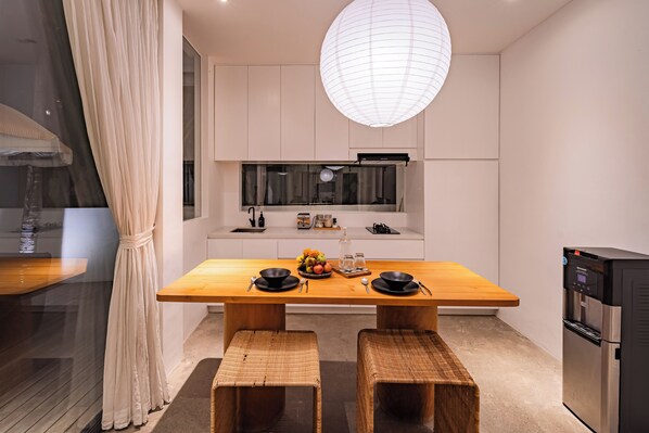 At Eco Villa Tenang, you will have exclusive access to the entire property. This includes the private pool, sundeck, enclosed living room, fully equipped kitchen, and the beautiful bedroom with a rice field view. Enjoy complete privacy and tranquility in your own tropical paradise. Daily housekeeping ensures the villa remains spotless throughout your stay.