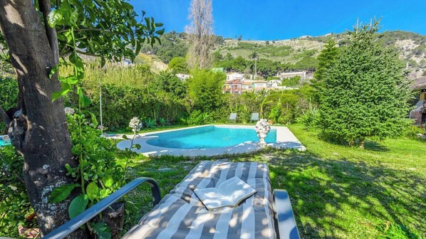 Huvila, jossa on yksityinen uima-allas ja keittiö