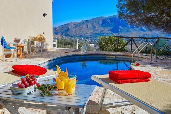 Huvila, jossa on yksityinen uima-allas ja keittiö