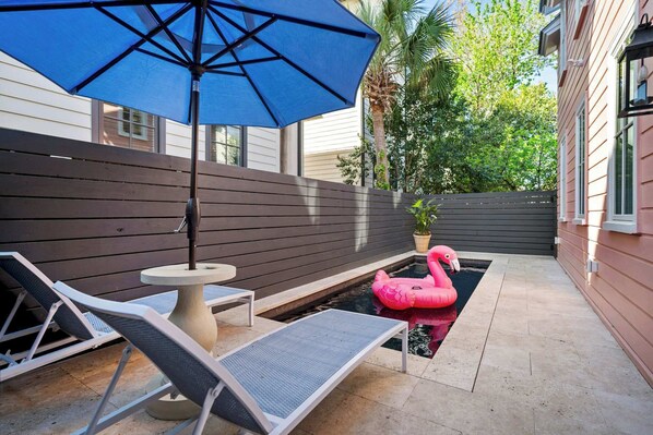 Experience luxury at The Pink Palm, a stunning new construction 4-bedroom, 4-bathroom retreat in downtown Charleston completed in APR 2025. Enjoy spacious living areas, elegant baths, and a fully equipped kitchen. Relax in the private plunge pool or explore the city’s historic charm, all just steps away. Whether you're lounging at the house or discovering the sights, The Pink Palm offers the perfect setting for an unforgettable getaway.