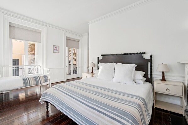 Escape to this charming 1810 historic two-story condo in the heart of Charleston, just one block from King Street. Featuring 3 spacious bedrooms and 3 full bathrooms, this beautifully preserved residence blends timeless character with modern comfort. Two large porches offer the perfect spot to relax after exploring the city. With ample living space and accommodations for up to 10 guests, this home is ideal for families or groups seeking an authentic Charleston experience.