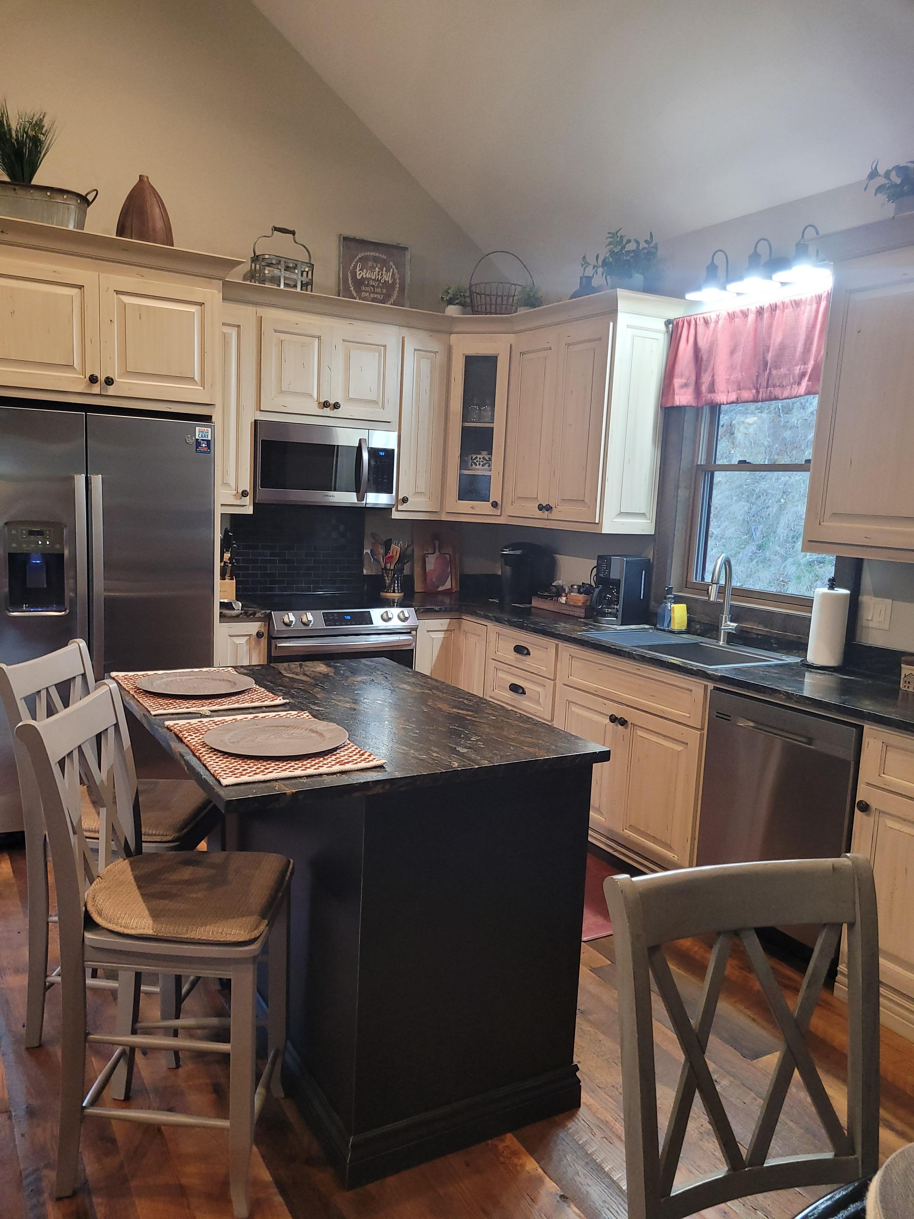 This cabin is outstanding!!! Everything about it is perfect for your getaway, including the large front porch overlooking the river and beautiful views of the mountains, along with a fire pit. The inside of the cabin is gorgeous and modern and decorated so beautifully!! We loved having the gas logs when the weather turned cold and snowed and there is also a washer and dryer. We met the sweet owner’s upon our arrival and could reach out to them with any issues, but had none. We had a wonderful time relaxing here and it will definitely not be our only stay, we're already looking forward to visiting again.