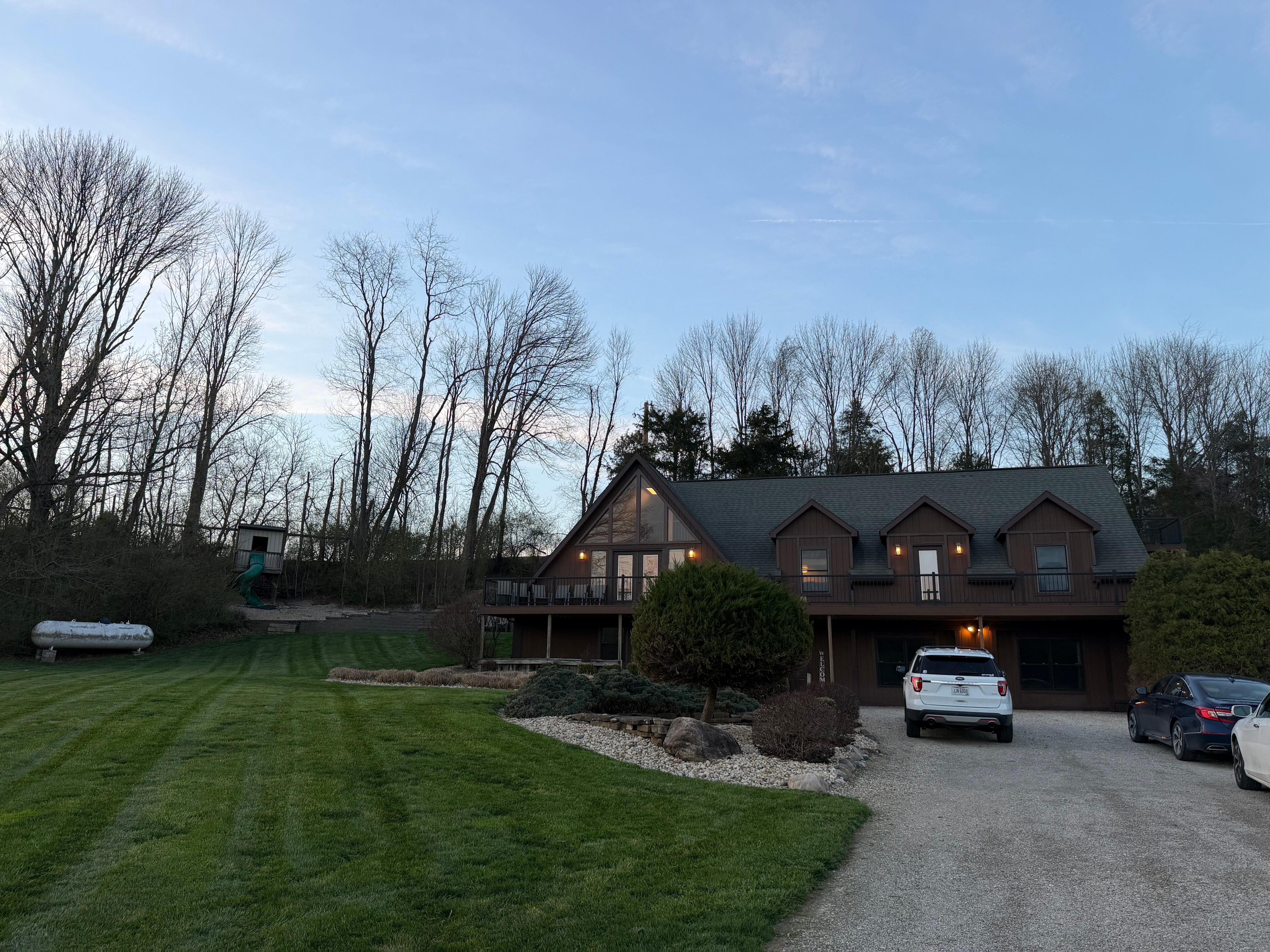 Karshner Place. Uusi lista kesällä 2016 Country Lane Lodgingille. Tämä tilava lomakohde sijaitsee lähellä Old Mans Cave -huvipuistoja luonnonkauniilla Hocking Hills -kadulla. Se sijaitsee myös lähellä Laurelvillen pikkukaupunkia, jossa on ravintoloita, huoltoasema, jäätelöpaikka, ruokakauppa, elokuvateatteri ja pankki. Karshner Place nukkuu jopa 22 henkeä. Siinä on iso olohuone, jossa on Smart TV ja Samsung DVD-soitin (apps). (TV on vain Internet-TV ja vain paikalliset kanavat, joita voit noutaa toisinaan, ei kaapelia tai satelliittia, tuo omat virtauslaitteet ja omat internet-TV-liittymät) Olohuoneessa on myös sähköinen takka, joka lämmittää. Siinä on suuri ruokasali, jossa on runsaasti istuinalueita. Se on yhteensä 7 makuuhuonetta ja 4 kylpyhuoneet. Siinä on täysin varustettu keittiö. Makuuhuone # 1 on avoin parvi alue yli ruokasali, jossa queen-vuode ja queen vetäytyminen sohva. Avoin parvi olohuoneen yläpuolella on kaksinkertainen vetäytyminen ja 1 leposohva. Makuuhuone # 2 on suljettu makuuhuone parvialueella, jossa on queen-vuode ja queen pulllout sohva ja pieni parveke. Tulevat parvi portaat, suoraan edessä on kylpyhuone # 1, jossa suihku ja suuri poreallas. Makuuhuone # 3 on pääkerroksessa ja siinä on queen-vuode ja makuuasentoinen kiesit. Tässä makuuhuoneessa on ovi menee suuri kylpyhuone # 1. Makuuhuone # 4 on pääkerroksessa ja siinä on queen-vuode. Makuuhuone # 5 on pääkerroksessa ja siinä on queen-vuode. Kylpyhuone # 2 on vain huoneet # 4 ja 5, joissa on amme / suihku. Makuuhuone # 6 on alemmalla tasolla ja siinä on queen-vuode. Tässä makuuhuoneessa on ovi menee Kylpyhuone # 3 kylpyammeella / suihkulla. Makuuhuone # 7 on alemmalla tasolla ja siinä on queen-vuode. Tässä makuuhuoneessa on ovi menee Kylpyhuone # 4 kylpyammeella / suihkulla. Rec Room -alueella on myös alemman tason täysi vetäytymisohva. Pyyhkeet ja vuodevaatteet tarjotaan. Siihen kuuluu myös suuri Rec-huone, jossa on biljardipöytä, pingispöytä ja Smart TV ja Samsung DVD-soitin (apps) alemmalla tasolla. Ulkopuolella se on kääri ympärillä kannella, pieni kuisti ja pieni patio takana Lodge kanssa kaasugrilli. Ulkopuolella Lodge on suuri patio, jossa palo rengas, jossa on irrotettava grilli grillata (voit grillata polttopuut, jotka myyvät Laurelville on Young's Market ja Ridge Inn). Lisäsimme 8 hengen Hot Tub vuonna 2018, joka sijaitsee Rec Roomin ulkopuolella. Viikkohinnat antavat sinulle ilmaisen viikonpäivän yön.
