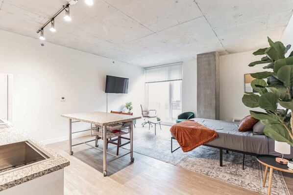 Indulge in upscale living at Skyline 776 by LiveSuites in downtown Cleveland. Our modern rentals offer comfort and convenience near top attractions. Multiple stylish units are available, your unit may vary slightly but will be equally well designed. Enjoy the theater, sauna, and rooftop club room. Secure parking included. Please note: construction noise may occur on weekdays.